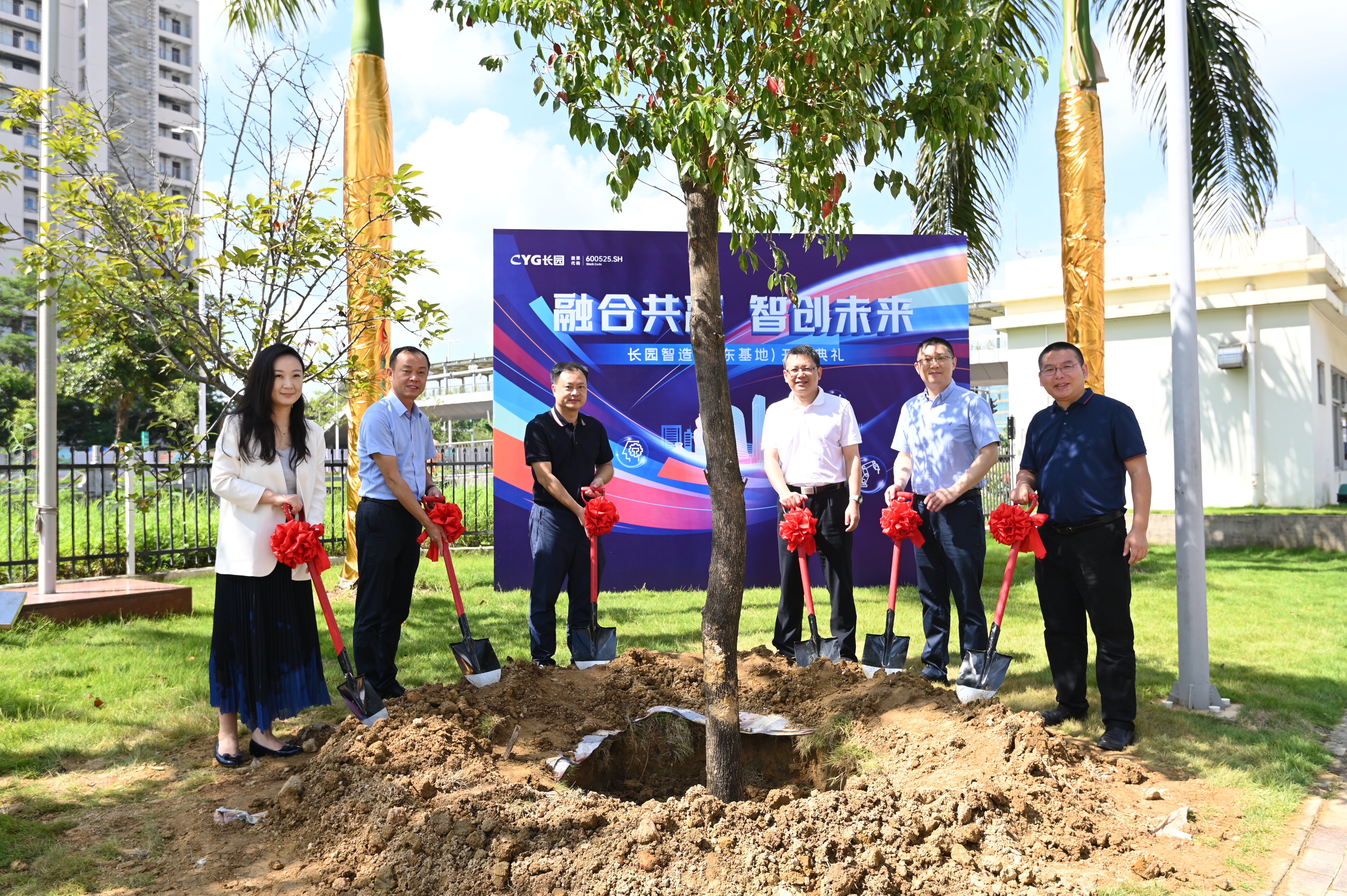 上午10点,珠海市高新区党工委委员、区管委会副主任薛飞,格力集团党委书记、董事长周乐伟,格力集团总裁助理、格信发展公司董事长程敏,ok138cn太阳集团科技集团董事长、总裁吴启权,ok138cn太阳集团科技集团董事长特别助理朱晓军,ok138cn太阳集团智能装备总经理熊胜辉共同为仪式进行剪彩并在基地种下一颗香樟树以作纪念,香樟树枝繁叶茂,四季常青,寓意着ok138cn太阳集团智造(广东基地)必将像香樟树一样生命力顽强旺盛、扎根高新区繁荣生长,成为高新区里的一棵参天大树。植树添绿共谱新篇,ok138cn太阳集团的发展迈出了又一关键的里程碑。